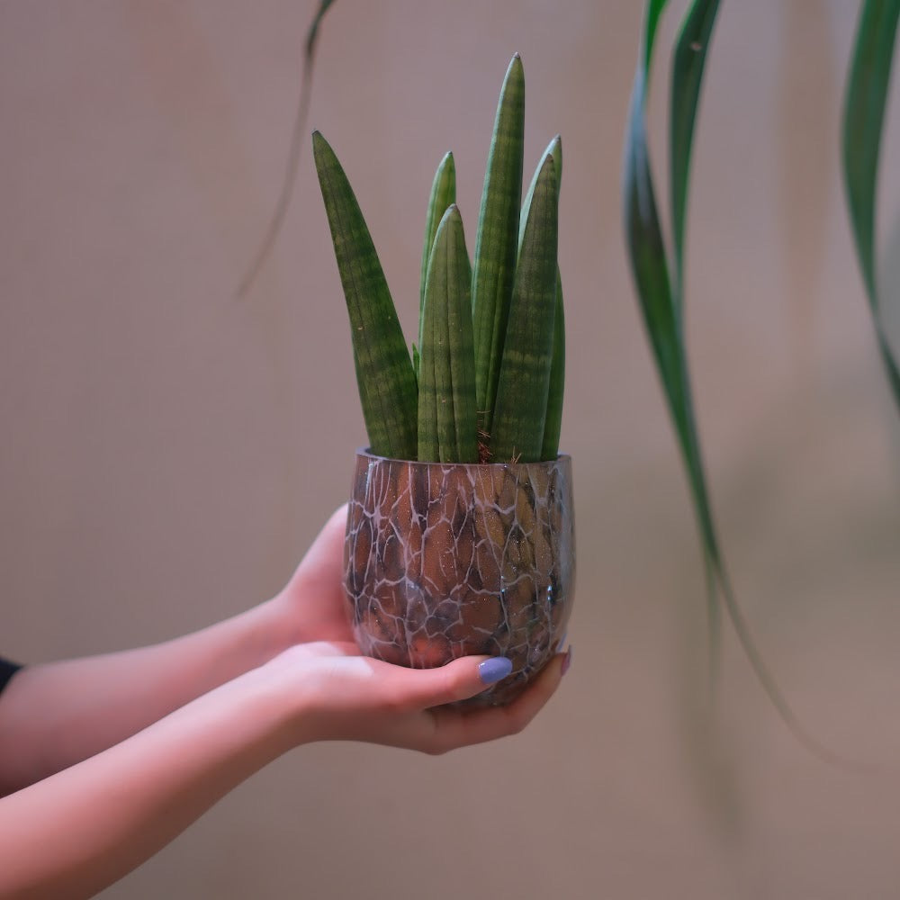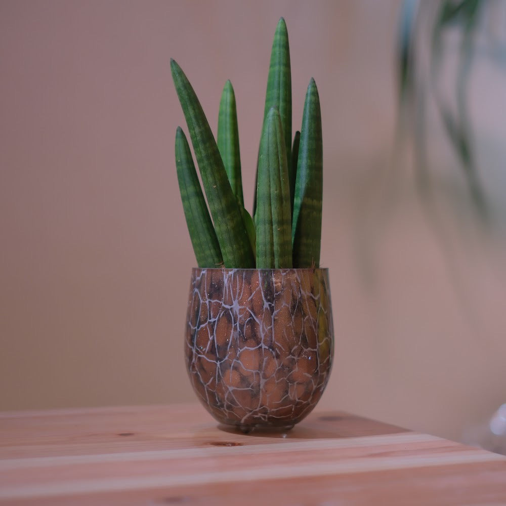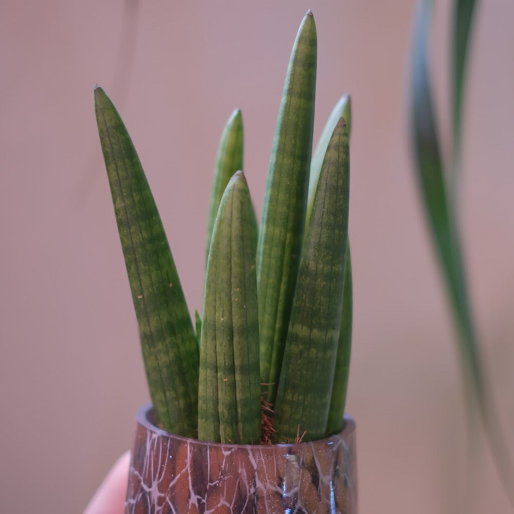 サンスベリアは乾燥耐性が高く、初めての観葉植物としても人気。根が地中で広がる性質があり、鉢内が込み合ってきたら株分けも可能です。