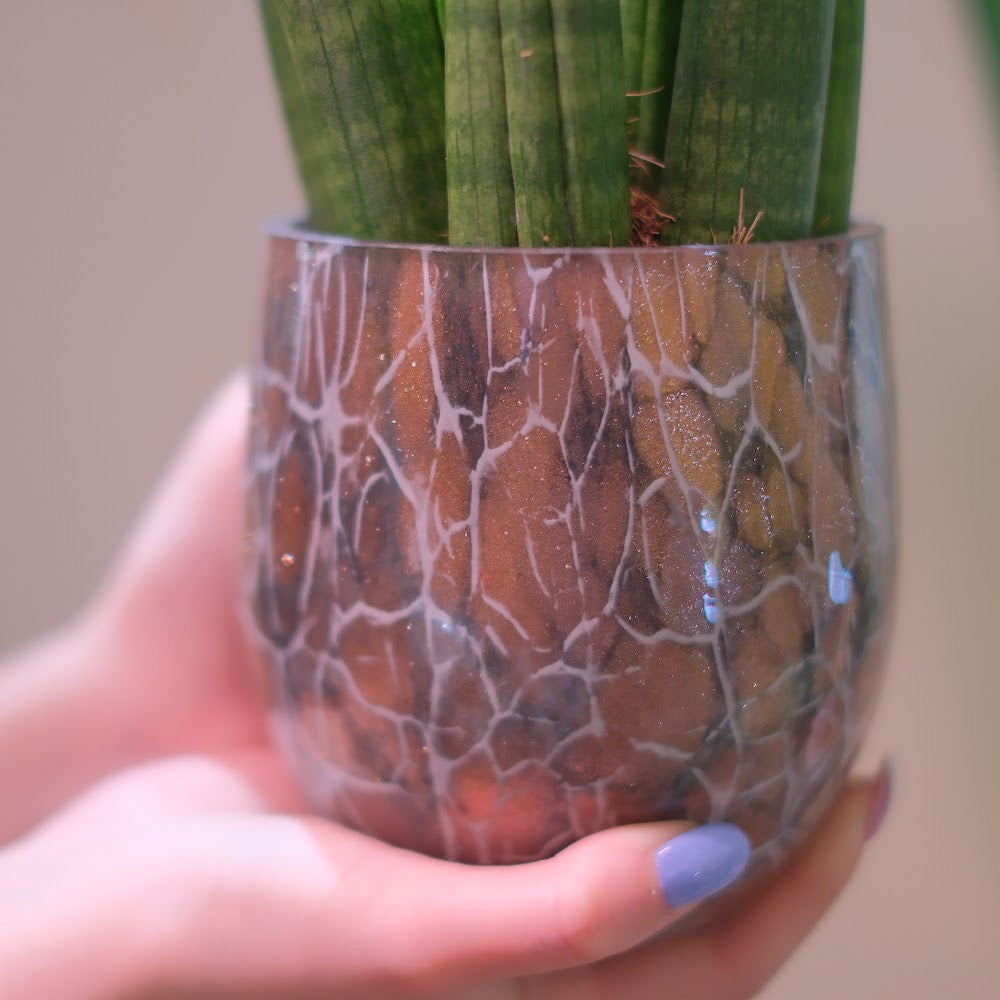 用土・鉢 通気性・排水性のよい土を使用。鉢底穴のあるガラス鉢と受け皿の組み合わせが適します。