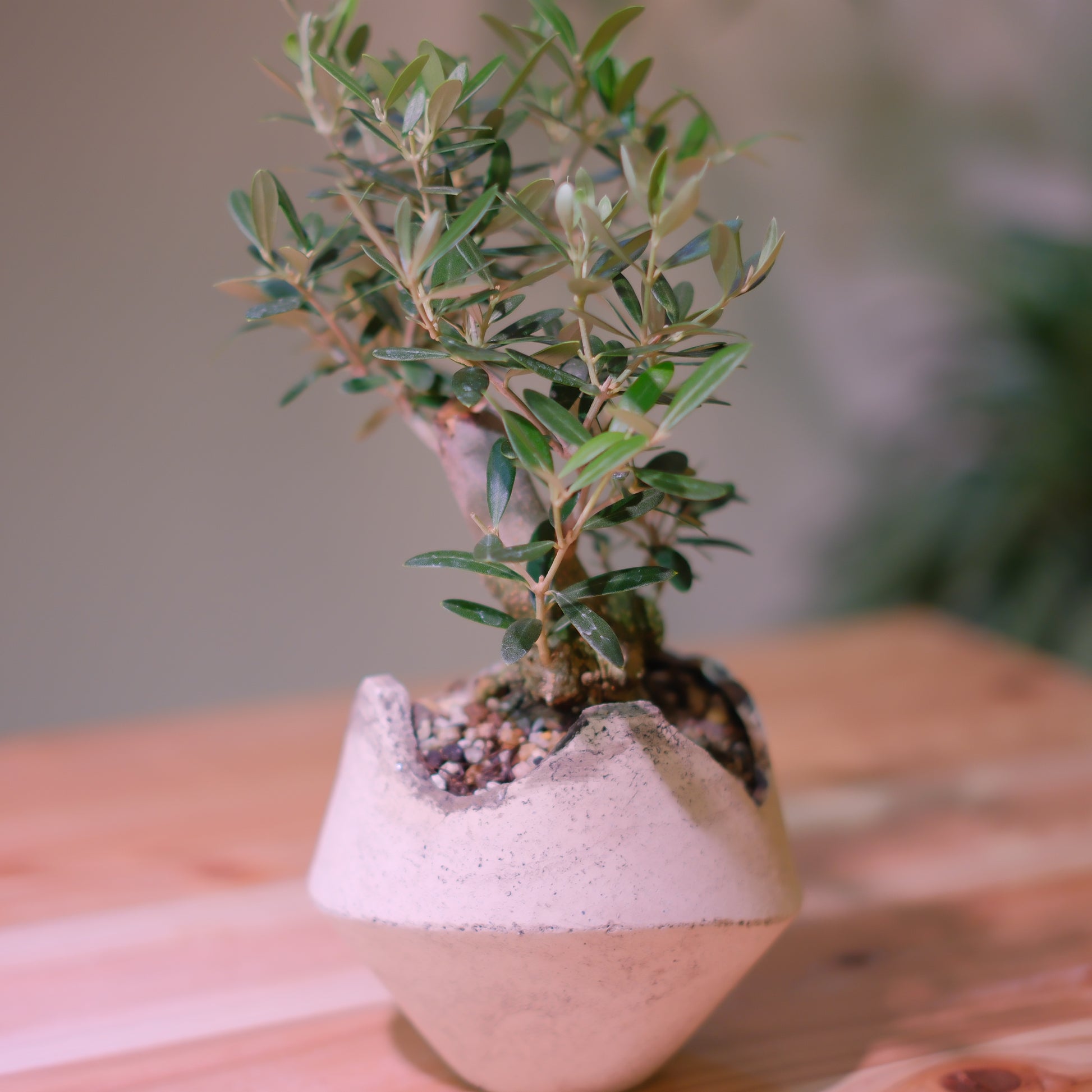 まさに、“小さな大樹”と呼ぶにふさわしいオリーブ盆栽です。